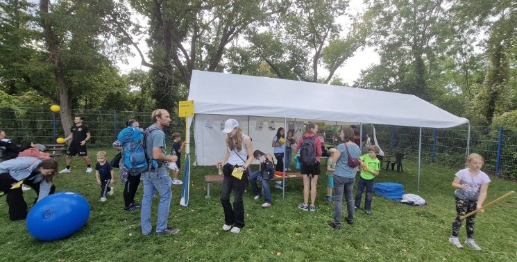Eine sehr lange und aufwendige Vorbereitungszeit ging dem 5-stündigen Mitmachtag am 13.09.2025 voraus. Verbannt in die hinterste Ecke des Rollkunstlaufstadions getrennt von unserer jüngeren Hälfte, dem Kindersport, gaben wir dennoch unser Bestes. Wir hatten einen schönen Pavillon zur Verfügung, den uns liebe Vatis von den Rollkunstlaufkindern aufgebaut haben.