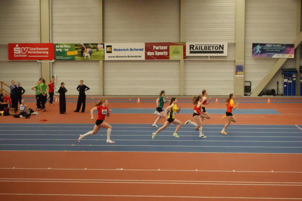 Nach einem Jahr Pause fand am 7. Februar endlich wieder das MITGAS Indoor-Meeting statt. Sechs DM-erprobte Rundbahnen und eine tolle Stimmung sind jedes Mal ein unvergessliches Erlebnis für unsere Sportlerinnen und Sportler. Florian Krebs und Carla waren dieses Mal unsere Stars in der Leipziger Arena. Flo legte ein großartiges 1000m-Rennen hin und siegte mit großem Vorsprung in 2:35,31min. Damit verbesserte er seine 1000m-Bestleistung um fast viereinhalb Sekunden. Clara wiederum steigerte sich über 60m um eine ganze Zehntel auf 8,28s und nahm den Grundspeed mit auf die 200m, wo sie in 26,81s erstmals unterm Hallendach unter 27 Sekunden blieb. Bestleistungen gab es auch für Valerie über 60m (8,43s) und Valentina über 1500m (5:25,17min), die sogar in der U18 Erste wurde.