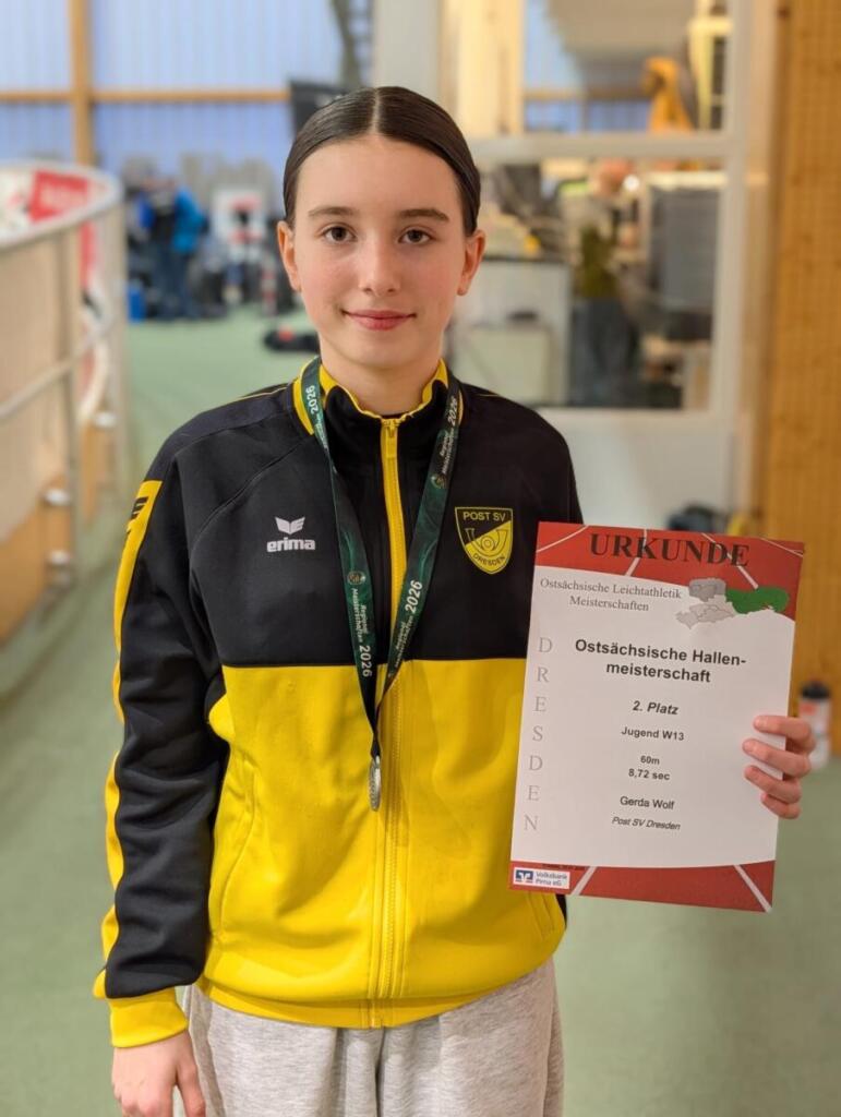 Während die Ostsächsischen Hallenmeisterschaften der U16 am 10. Januar einer Unwetterwarnung zum Opfer fielen, konnten unsere U12/U14 Ende des Monats um Medaillen kämpfen. Dabei waren 17 Mädchen und Jungen vom Post SV. Unsere Jungen der Startgemeinschaft DD-West mit Okke und Anton konnten sich mit gelungenen Wechseln die Goldmedaille über 4x100m der U14 abholen. Die Staffel-Jungen der AK U12 mit Paul, Paul, Theo und Leon errangen die Silbermedaille. Leon räumte in der M10 mit insgesamt 4 Medaillen, davon 3x Gold und 1x Silber, richtig ab. Weitere Medaillen gingen in der M11 an Theo mit 2x Silber und 1x Bronze. In der W12 belegte Leonie einen überraschenden 2. Platz über 800m nach couragiertem Lauf und Gerda zeigte in der W13 ihre 60m-Sprintqualität ebenso mit dem Gewinn der Silbermedaille. Bei den Ostsächsischen Mehrkampfmeisterschaften im November gewann Leon in der M10 mit 3 Einzelsiegen und einem 2. Platz den 4-Kampf mit 155 Punkten Vorsprung. Theo tat es ihm fast gleich und wurde in der M11 bei 2 Einzelsiegen, einem 2. und einem 6. Platz insgesamt Zweiter. In der W15 schaffte Adriana überraschend auch einen 2. Platz in der Gesamtwertung mit fünfmal Platz 2 in den Einzeldisziplinen! Unsere drei Mädels der U16 mussten schließlich in der Teamwertung für eine Goldmedaille nur noch antreten, da kein anderer Verein in der Lage war, ein solches zu stellen… In beiden Vorjahren waren wir dort stets Vizemeister geworden und standen nun ganz oben.