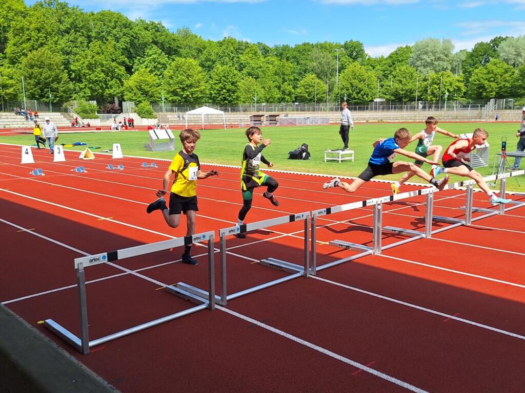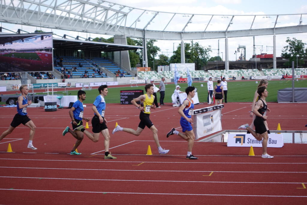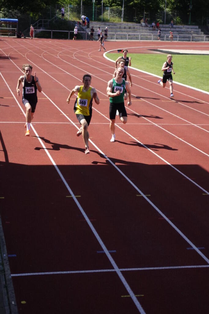 Bei den XXL-Landesmeisterschaften der U14-Erwachsenen im Steyer-Stadion war uns kein Titel vergönnt, doch konnten wir mit je 4 Silber- und Bronzemedaillen sowie vielen guten Leistungen insgesamt zufrieden sein. Zum Auftakt am Freitag gewannen Adriana und Valentina in der W14 und W15 jeweils Bronze, Mitja rannte trotz Resterkältung in der U18 zu Silber. Seinen Traum von der Qualifikation für die Deutschen Jugendmeisterschaften konnte er sich diese Saison leider noch nicht erfüllen. Am Samstag gewann Sarah überraschend Bronze in 12,76s (bei -1,6 m/s Gegenwind). Einen Medaillendoppelschlag landeten Erik (Silber mit 6,41m) und Jannes (Bronze mit 6,19m) im Männerweitsprung. Der Sonntag glänzte silbern – vor Schweiß bei über 30 Grad und dank zweier Vizetitel. Friederike sprang mit 1,55m auf Platz 2 im Frauenhochsprung. Florian ließ sich vom Sieger über 800m zu einer grandiosen neuen Bestleistung von 1:56,93s – fast eine Sekunde schneller als seine drei Jahre alte PB! Zur Belohnung gab es obendrein die Silbermedaille. Eine Medaille hätte auch Marius verdient gehabt. Mit dem perfekten Start ging es in das viertschnellste 200m-Rennen seines Lebens zu 21,99s. Auf Bronze fehlten nur 15 Hundertstel. Bei perfektem Rückenwind steigerte Clara ihren erst eine Woche zuvor aufgestellten Hausrekord über 200m um eine weitere Zehntel auf 26,30s.