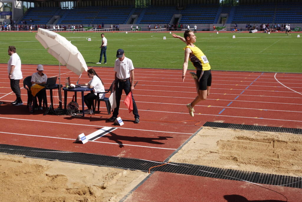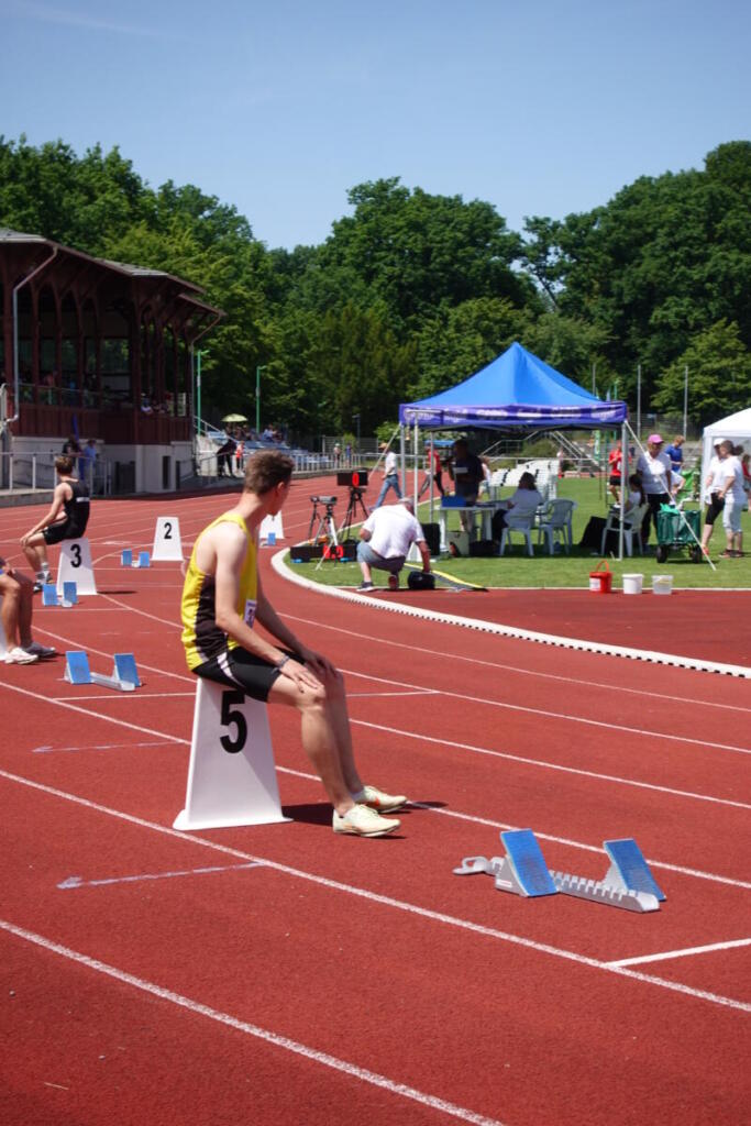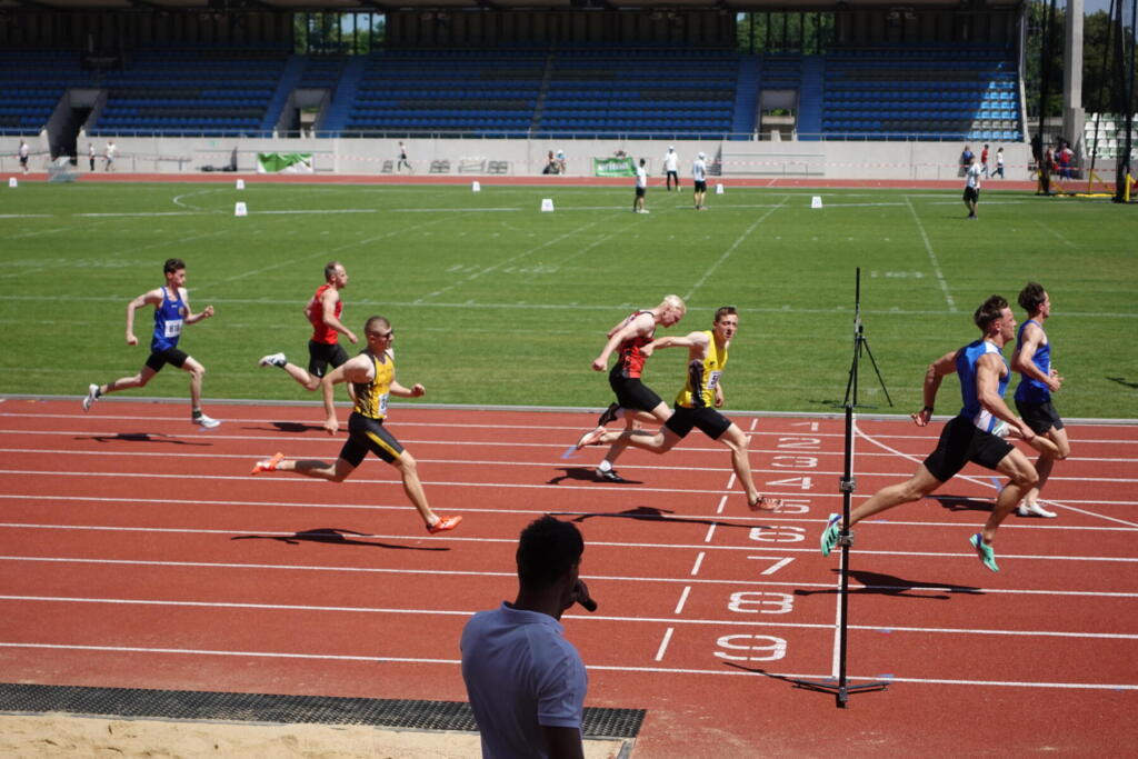 Auf große Leistungen hoffen wir immer beim Berlin Meeting zu Pfingsten. In diesem Jahr war der Wind leider besonders stark und es gab eine längere Unwetterunterbrechung. Clara erwischte allerdings nahezu perfekte Windverhältnisse, die sie über 200m zu einer neuen PB von 26,40s trieben. Am Vortag fehlte über 100m die Winzigkeit von einer Hundertstel zur ersten 12er-Zeit. Unsere Läufer Job, Florian und Mitja nutzen die starken Felder zu guten Zeiten. Für den kuriosesten Moment sorgte Max im Weitsprung: Als er zum vierten Mal exakt 5,59m sprang, musste selbst der Kampfrichter am Weitenmessgerät lachen.