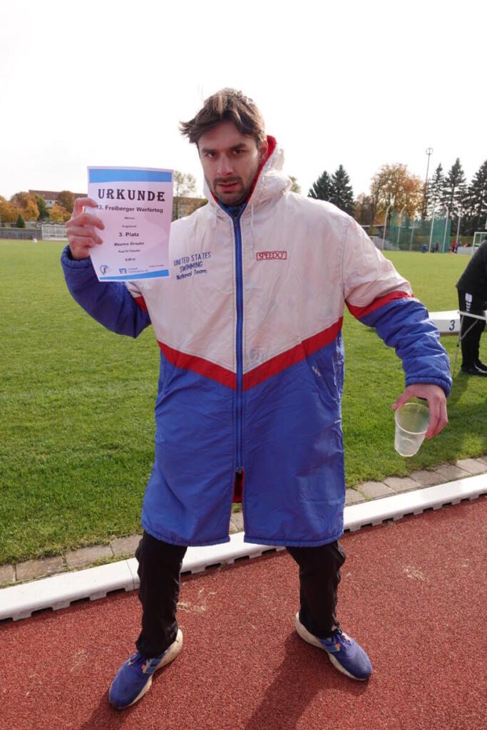 Am 7. September konnten wir dann endlich mit dem Postsportfest in das Steyer-Stadion zurückkehren, ein schönes Geschenk zum 100. Vereinsgeburtstag. Mit Teilnehmerrekord, Familienstaffel und Postmeile gab es viel zu sehen bei bester Stimmung. Mehr dazu hier. Damit war der lange Leichtathletiksommer aber noch nicht zu Ende. Bei den Landesmeisterschaften Team am 21. September konnten wir in der U16 jeweils Platz 6 bei Jungen und Mädchen erringen. Am Tag der deutschen Einheit ging es zur Stadioneinweihung nach Pulsnitz, wo jeder mit Urkunde und Lebkuchen nach Hause fahren durfte. Leon gewann in der M9 sowohl den 50m-Sprint als auch den Weitsprung und souverän den 800m-Lauf (in starken 2:44,53min) und wurde „nur“ 2. im Ballwurf. Mit der 800m-Zeit war er in der M9 schneller als alle Läufer der AKs M10 und M11! Valentina krönte ihren Geburtstag mit einer neuen 800m-Bestzeit. Job darf sich nun als neuer Stadion-Rekordhalter der Männer über 800m in 1:56,83min nennen und hat mit seinem couragierten Lauf viel Sympathie bei den anwesenden Sportlern und Gästen erobert. Und weil das noch immer nicht genug war, fuhren Elise, Anton und Maurice am 20. Oktober auch noch zum „Abwerfen“ nach Freiberg. Bei beinahe winterlichen Temperaturen purzelten noch einmal einige Bestleistungen.