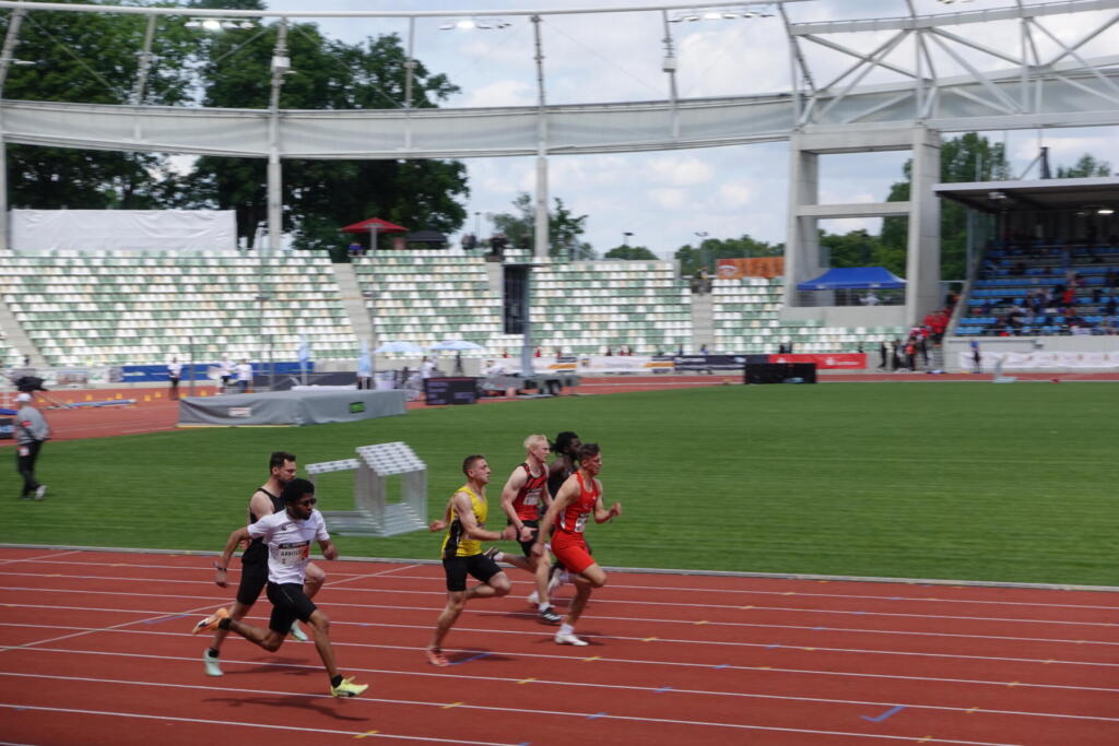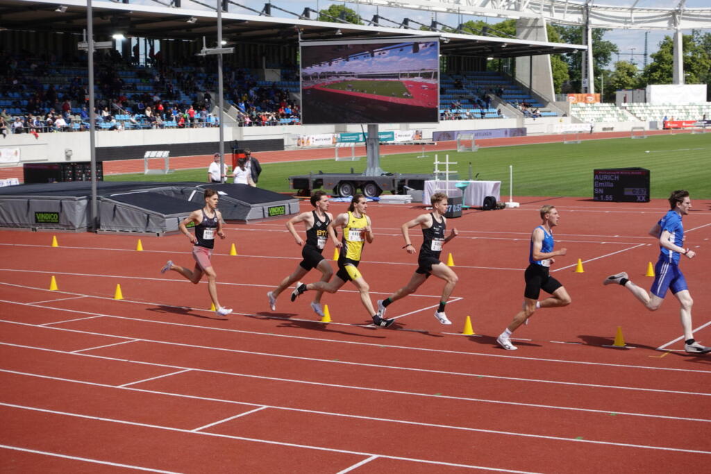 Am 24. Mai war es dann endlich auch für die älteren soweit: Beim DSC-Meeting konnten sie den neuen Dresdner Leichtathletiktempel unter die Spikes nehmen. Die Veranstalter hatten zum Abschluss ein Feuerwerk versprochen. Und Job lieferte. Ein überragendes Rennen mit einer starken Zielgeraden führten ihn zu einer deutlichen neuen Bestleistung von 1:53,72min (-1,5s). Hätte er einen deutschen Pass, wäre das die Qualifikation für die Deutschen U23-Meisterschaften gewesen. Eine weitere tolle Bestleistung hatte Clara am Nachmittag abgeliefert: Über 200m blieb sie in 26,84s erstmals unter 27 Sekunden. Marius zeigte vor allem über 100m mit 11,08s im Vorlauf und 11,12s im Endlauf des Vorprogramms einen starken Saisoneinstieg. Am folgenden Tag ging es für die U12-20 an gleicher Stelle um Medaillen bei den Dresdener Kinder- und Jugendspielen. Insgesamt sammelten wir 5xGold, 7xSilber und 4xBronze.